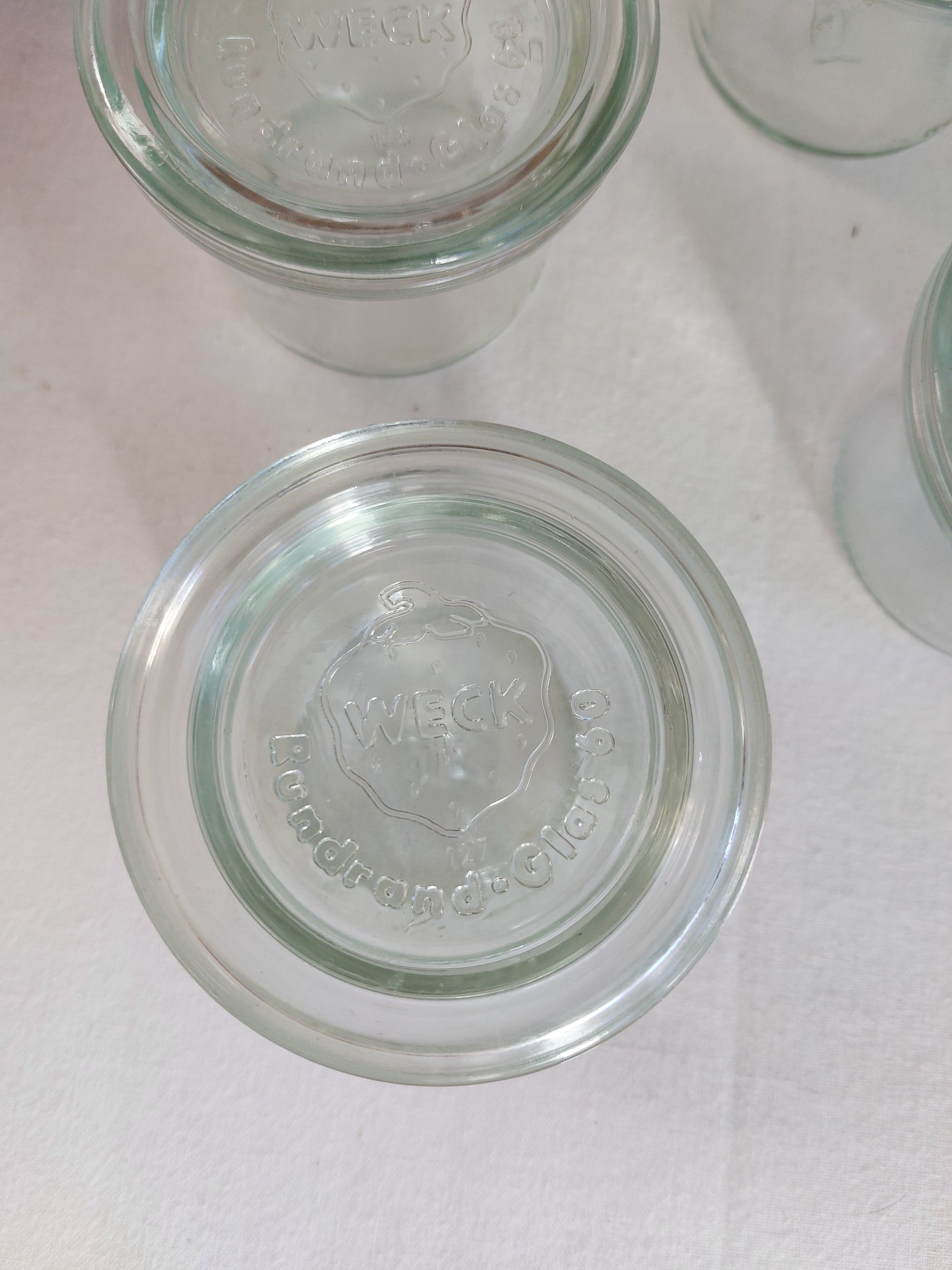 Lot de 4 petits bocaux WECK d’une contenance de 35ml en parfait état. Ils seront parfaits pour compléter une série de bocaux anciens et vintage. Vous pourrez stocker vos fruits secs et graines. Pour un style maison de campagne et à ne surtout pas dissimuler dans un placard !
